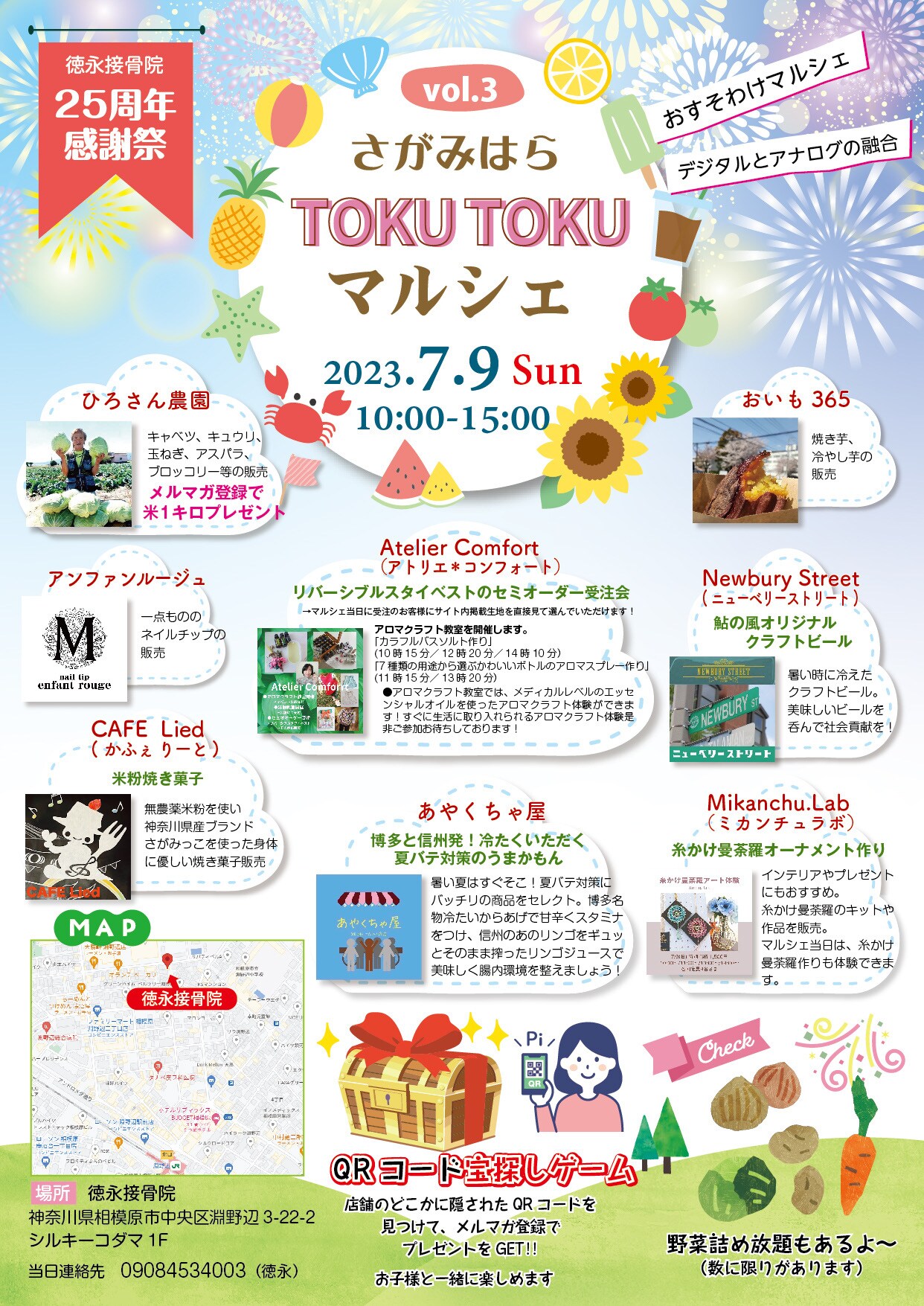 この25周年記念マルシェは、徳永接骨院の歴史と皆様への感謝の気持ちを込めて開催されます。ぜひお誘い合わせの上、ご家族やご友人とご一緒にご参加ください♪( ´▽`)