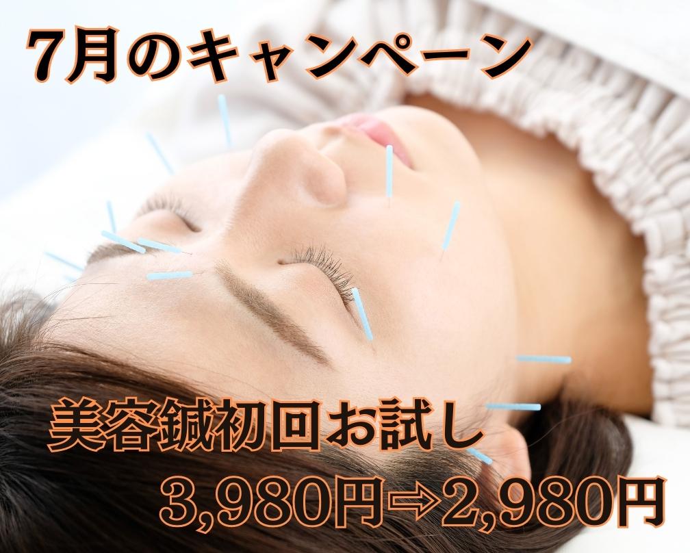 7月中に美容鍼をご予約いただければ、8月に入っても2,980円で初回お試し出来ますのでぜひご活用ください!