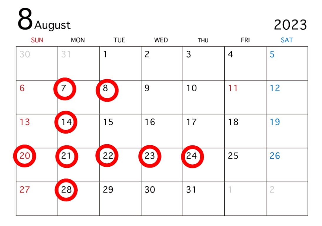 8月のお休みと限定フォーム情報