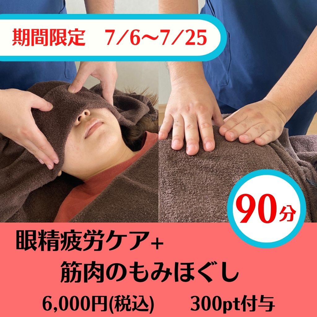 そこで、皆様がお気軽に目と身体の疲れをスッキリできるように、期間限定でアイリフレクソロジーと筋肉のもみほぐしのセットメニューを特別価格でご提供させていただきます!