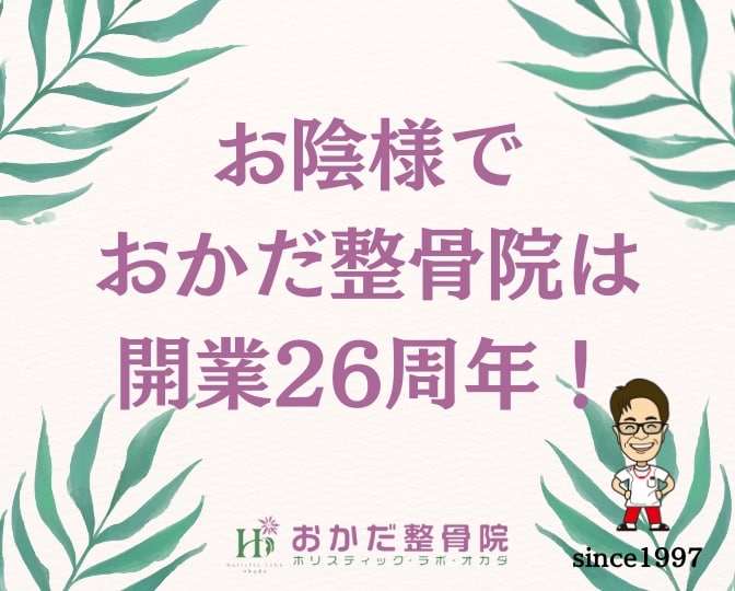 おかだ整骨院は本日(7/10)で開業26周年を迎えました。