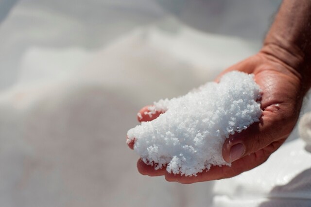 太陽と風の力でゆっくりと水分を蒸発させ結晶化させて作っているモティアの塩です✨
