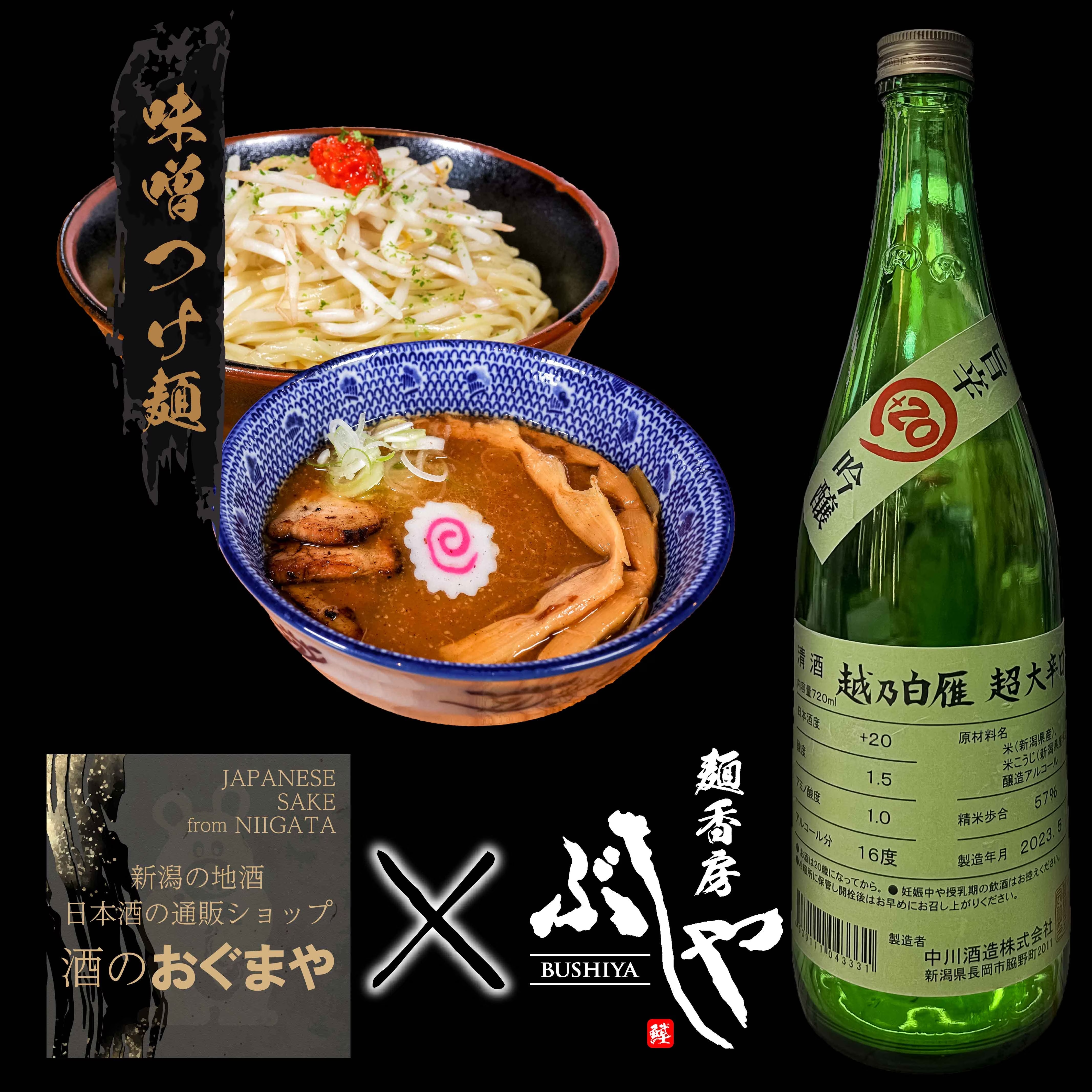その越乃白雁の『酒のおぐまや限定』、越乃白雁 超大辛口吟醸と麺香房ぶしやの『味噌つけ麺』のペアリング✨