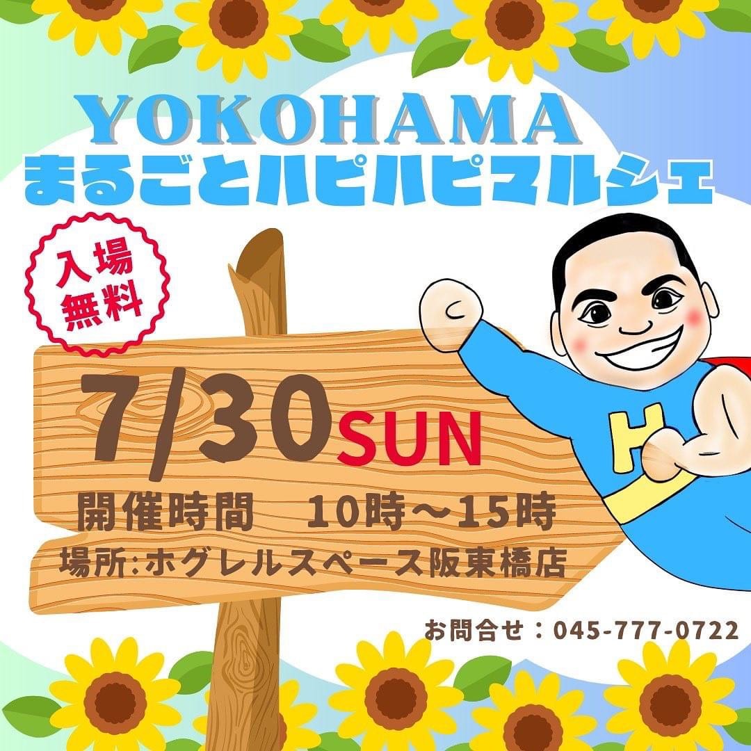 7月30日(日)に横浜の阪東橋にあるホグレルスペースさんでまるごとハピハピマルシェが開催されます☺️