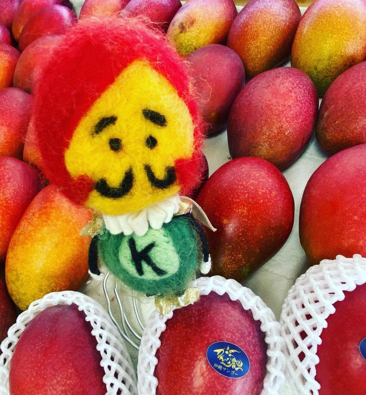 (お人形は、かんな農園公式キャラクターのマンゴー王、羊毛フェルトで私が何年か前に作成したもの♡器用な一面もあるのです♡)
