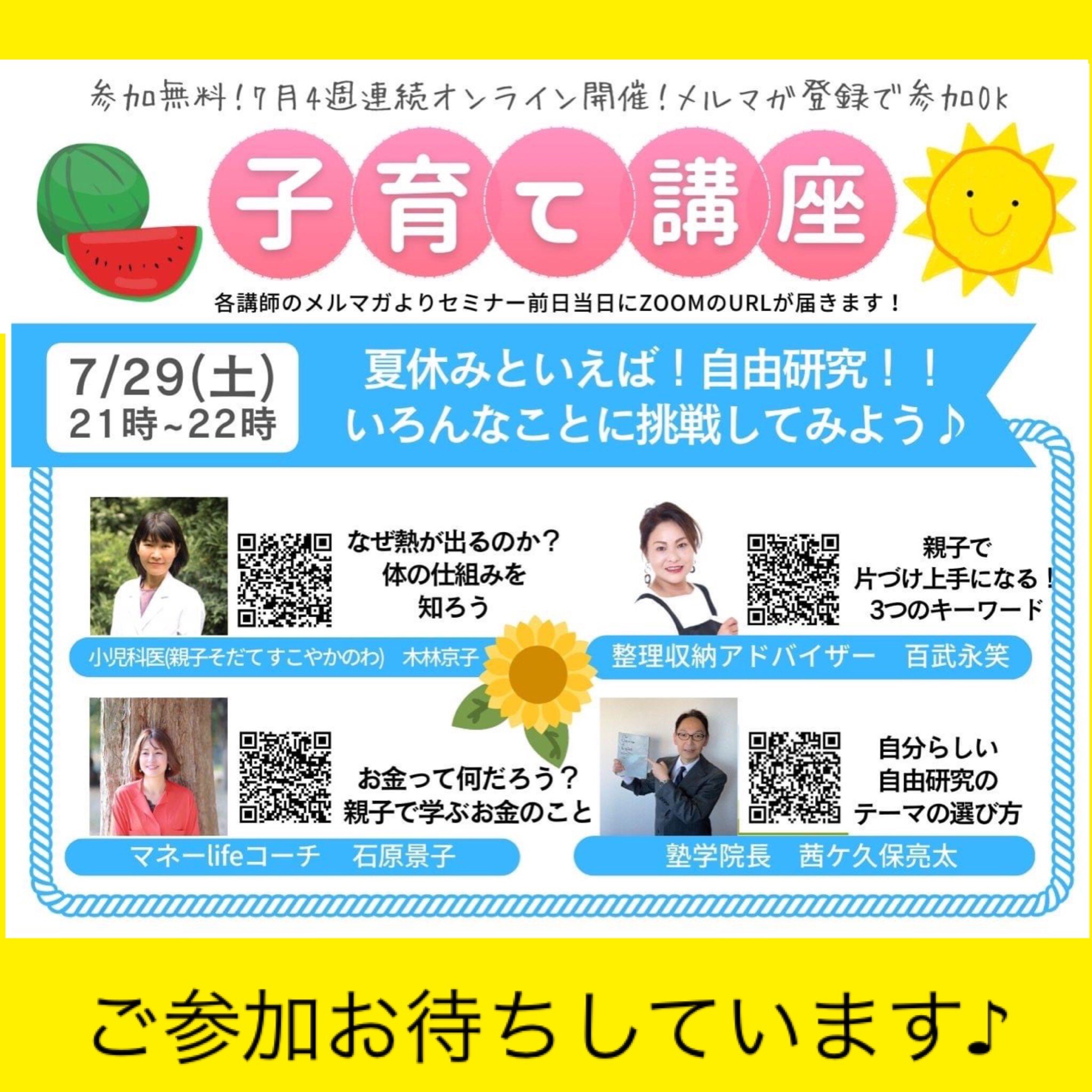 本日特別🌻夏休み🍉子育てセミナー