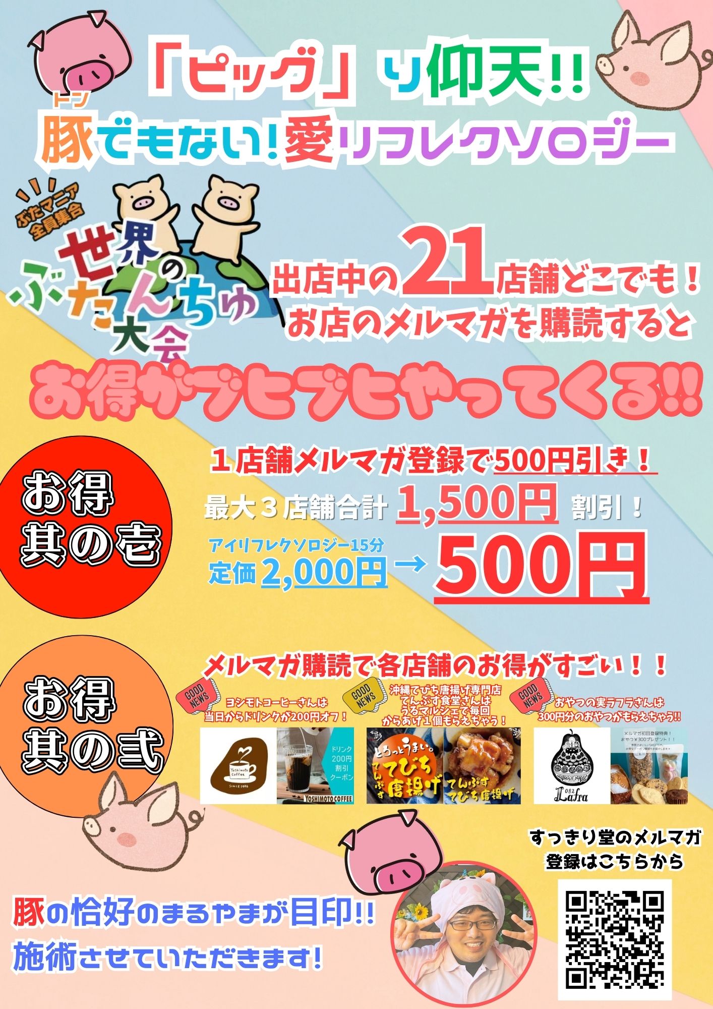 さて、そんな中アイリフレクソロジーすっきり堂は、今度の土曜日と日曜日にうるま市で開催される『世界のぶたんちゅ大会』に出店させていただくことになりました!