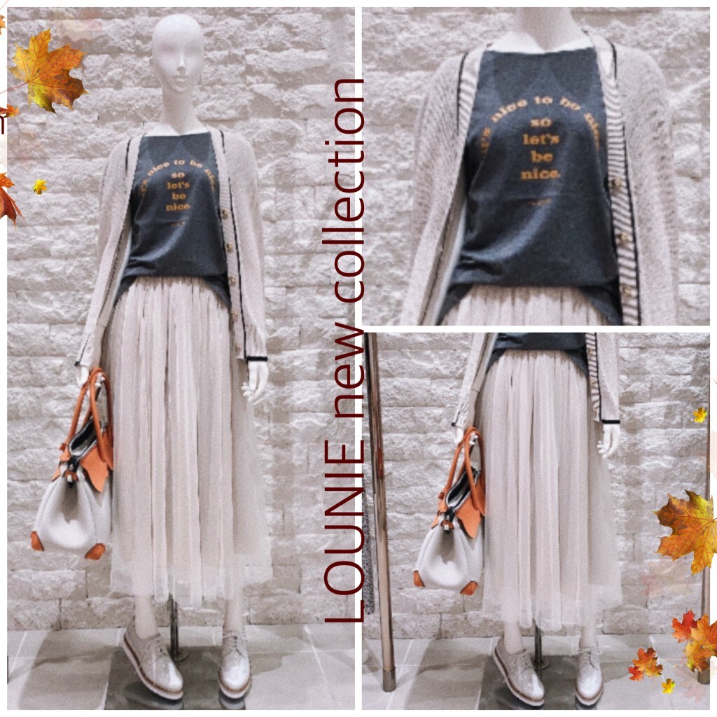 ♡ルーニーからは秋色のオレンジロゴが目を引くティシャツにチュールのシアースカートコーデで甘さをプラスして大人カジュアルに😊🎶