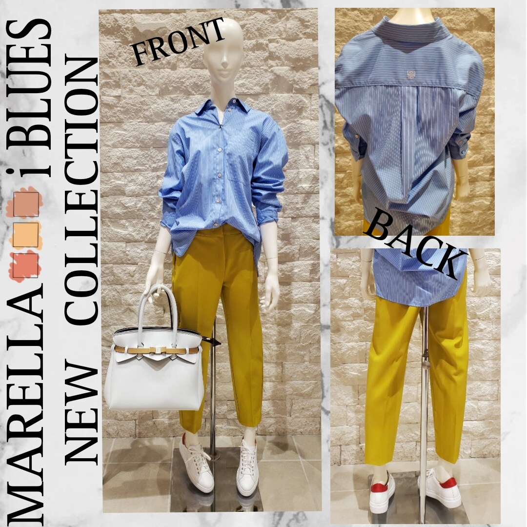 ブルーに相性の良いイエローのカラーパンツは