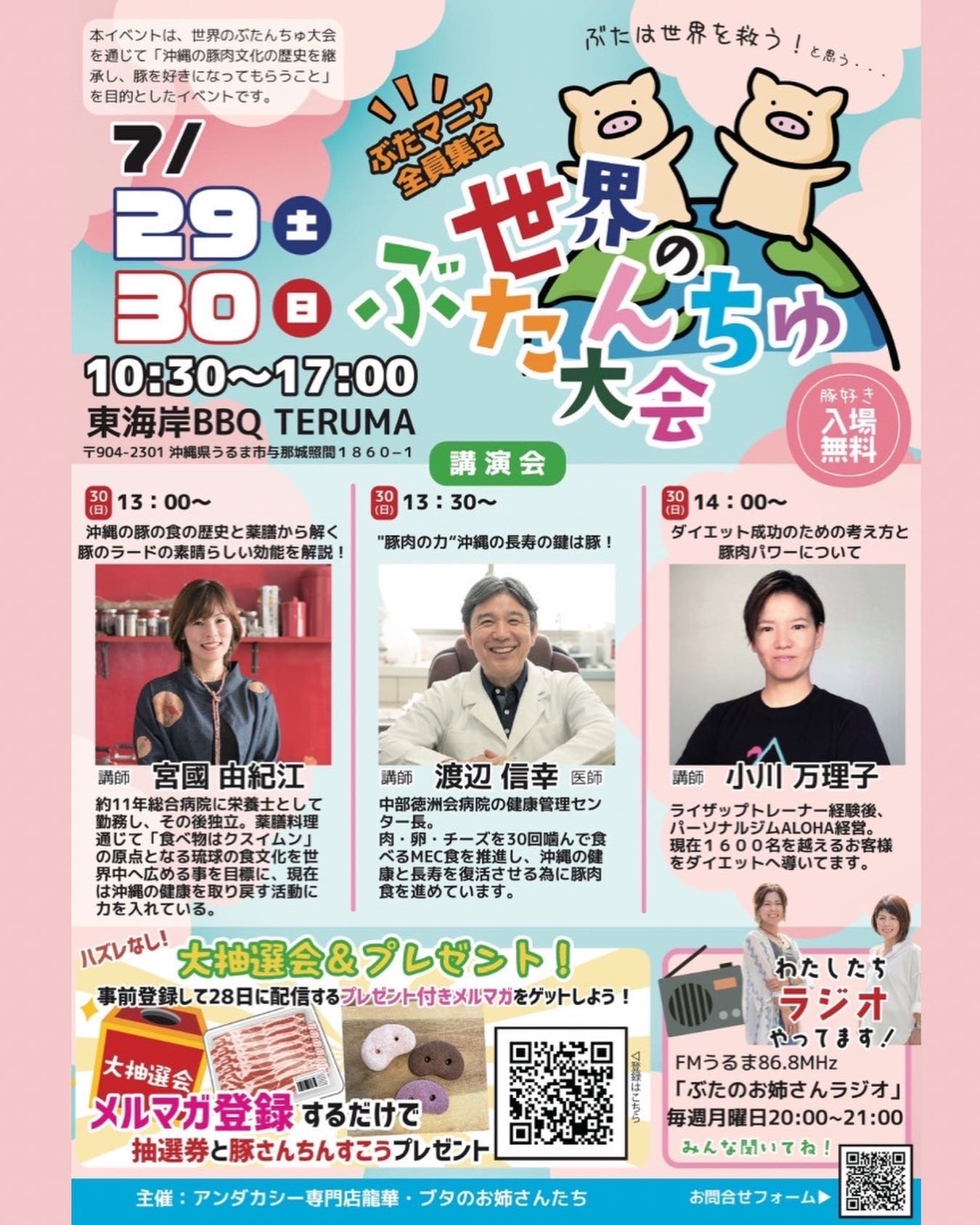 沖縄の \ 健康と豚 / について、専門性の高い3名の講師の皆様へ登壇をして頂きます。