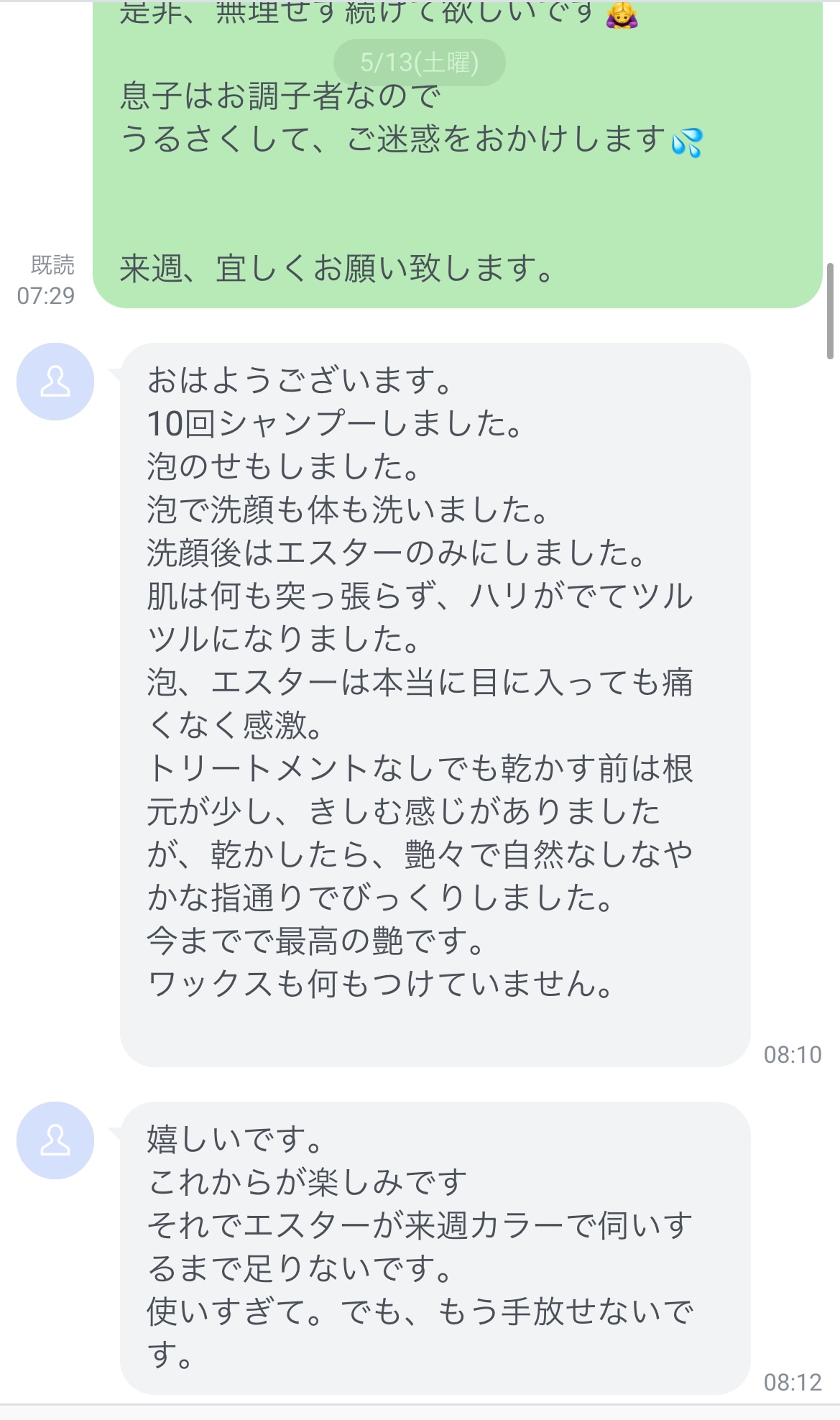コチラは当店に4月頃から通ってくださっているお客様の声です。