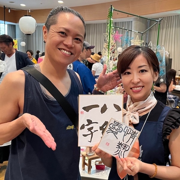 色紙に好きな文字をその場で書いて頂き