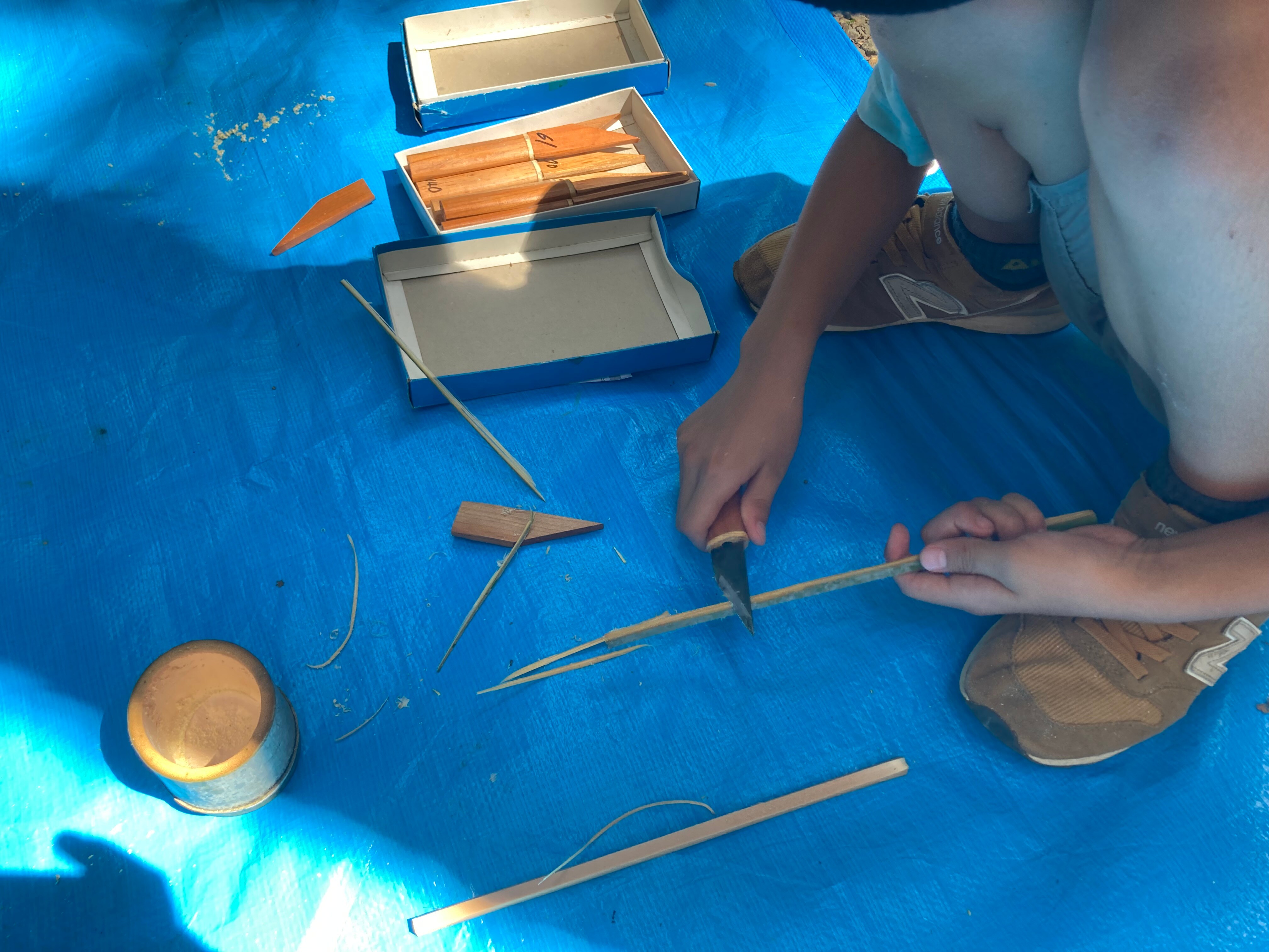 昼食に流しそうめんを頂く為に、竹で「そうめんつゆ」を入れる器と、ナイフで竹を細く削り箸(はし)を作り、昼食後はカヌー体験をして、最後にスイカをみんなで食べて解散というスケジュールでした。