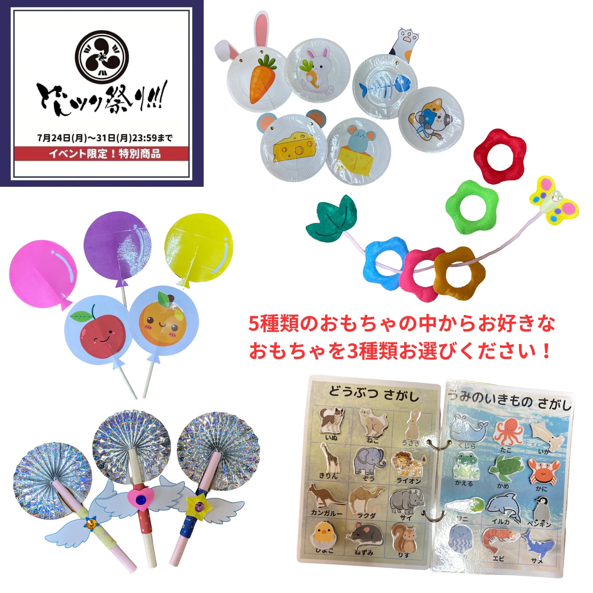 【どんツク祭り!!!限定高ポイント】0歳〜就学前のお子様対象 つばさ先生が作る手作り知育おもちゃセット|選べるお好きなおもちゃ3点セット