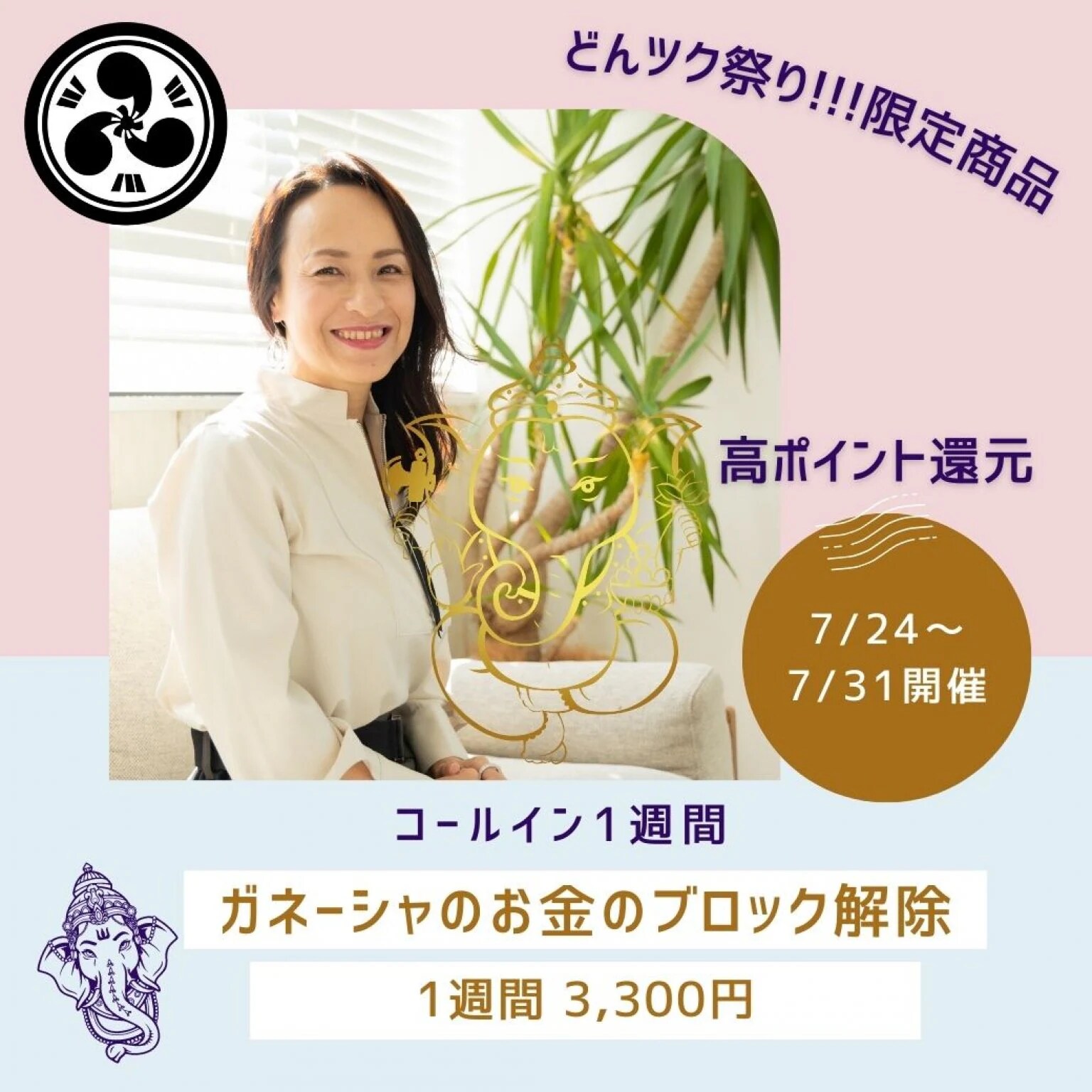 31日まで♡ガネーシャのお金のブロック解除【どんツク祭り!!!限定】7月31日23:59 高ポイント還元中
