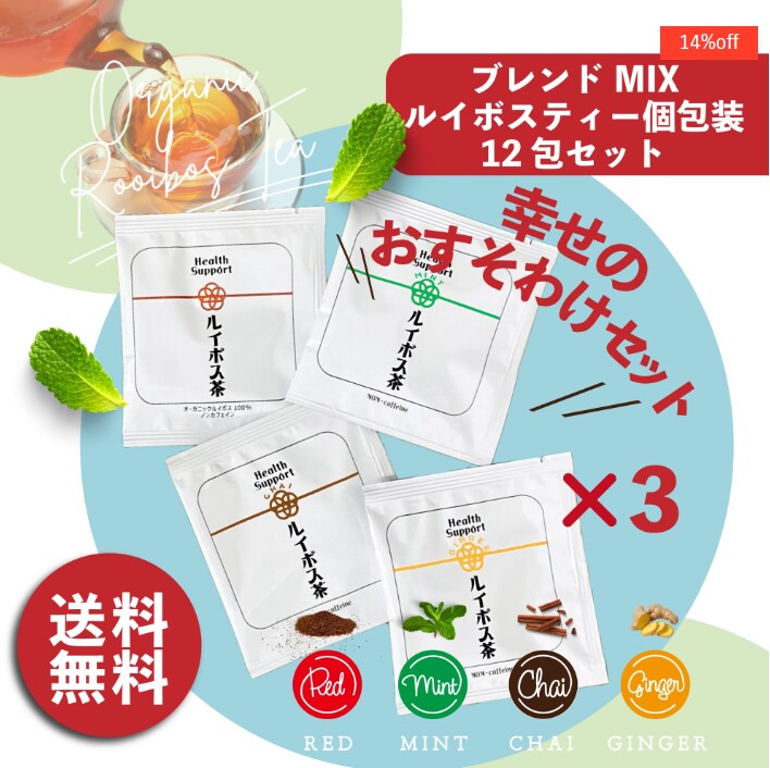 ◆送料無料!幸せのおすそわけセット(12包入)《ブレンドルイボスティー3種×3包/有機ルイボスティー3包》