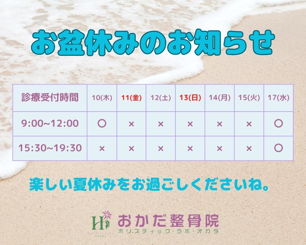 『お盆休みのお知らせ!』【愛媛県西予市 おかだ整骨院】