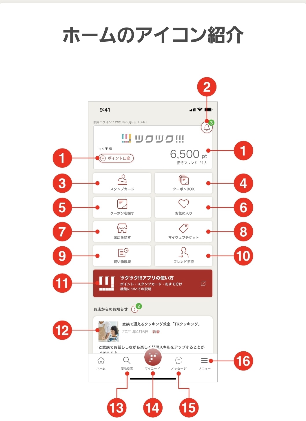 ⑩がフレンド招待です!