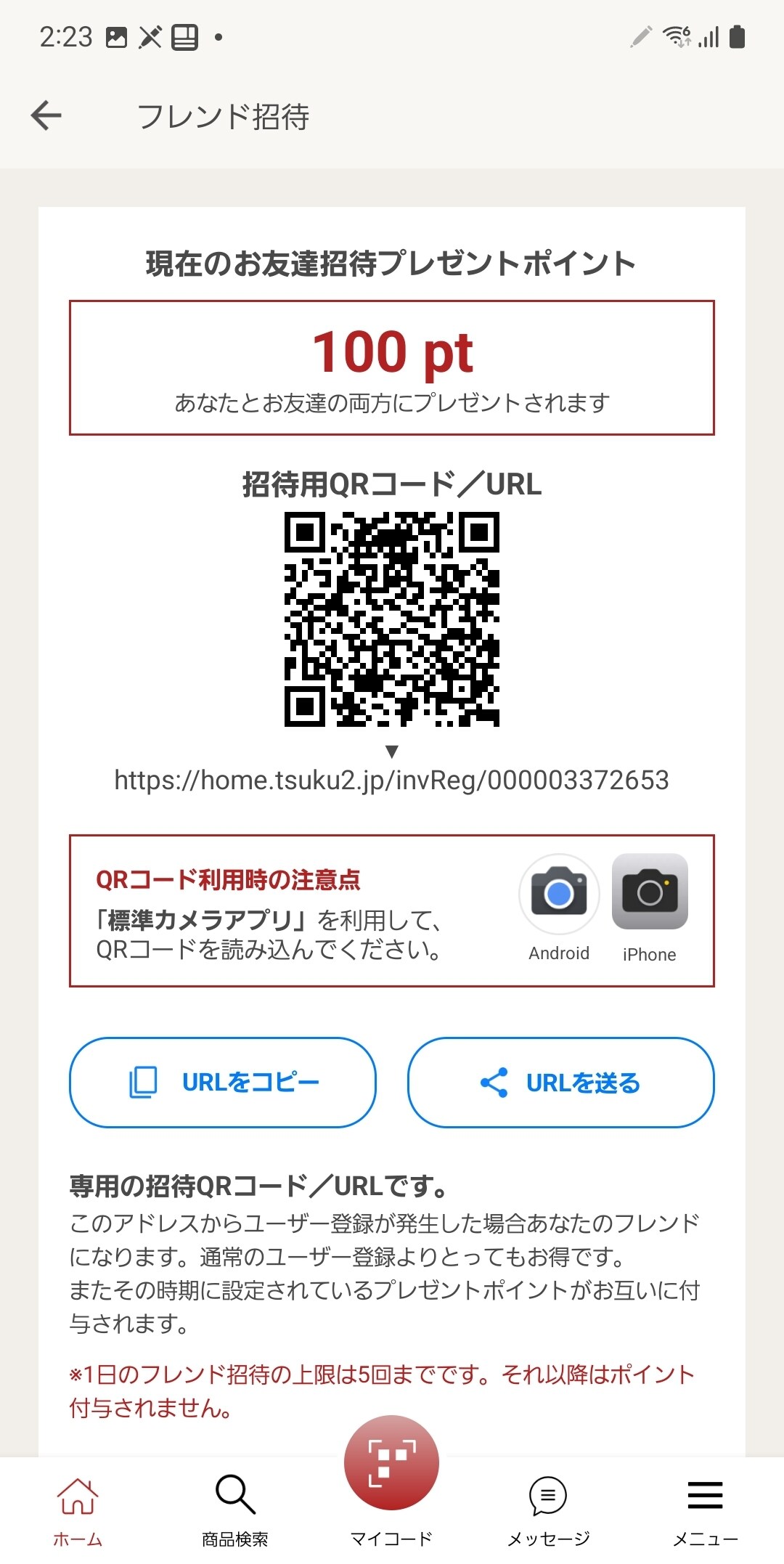 また招待するとお互い100ポイントもらえます!