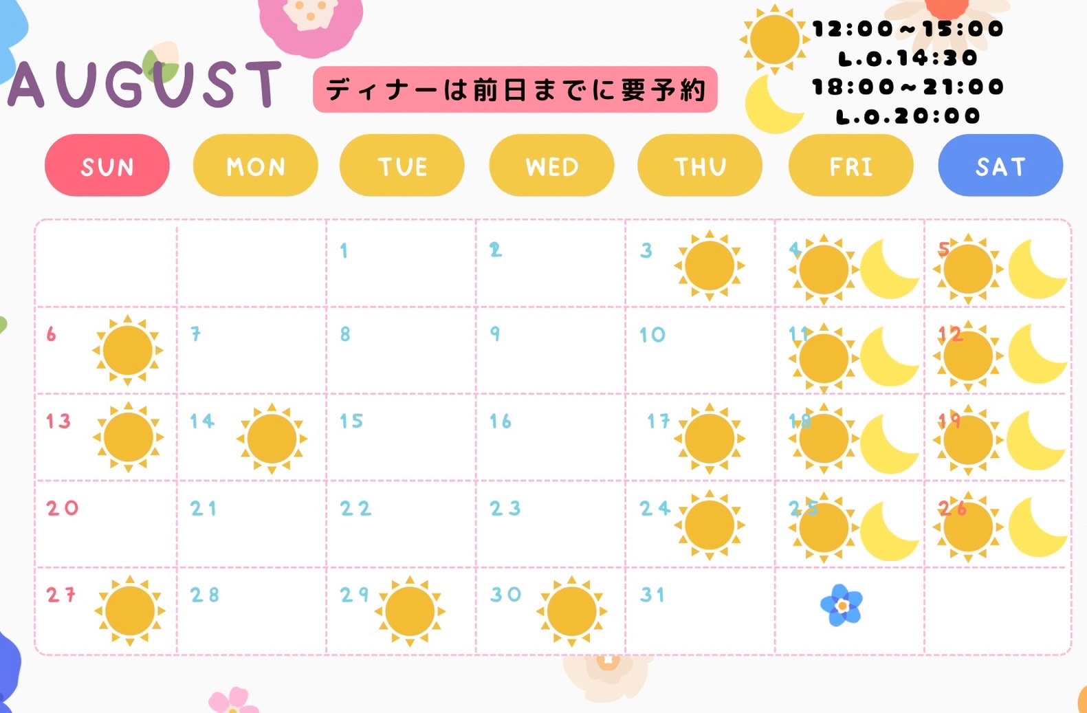 ㈮㈯のディナーは前日までのご予約のみのご案内となります😄