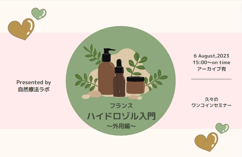 ★今度の日曜日ワンコインセミナー「ハイドロゾル(芳香蒸留水)入門|フランス植物療法の世界を知ろう」を行います。ハイドロゾルって何?と気になるかたはご参加ください。8/6夜にはアーカイブ配信をお送りいたします。今回、外用入門編として、頭からつま先まで、全身に活用できるハイドロゾル入門をお伝えします。ローズ・ネロリ・ラベンダーを中心に、他の芳香蒸留水をどう活用していったらよいかのダイジェストや、料理への活用や内用にも少し触れます❣