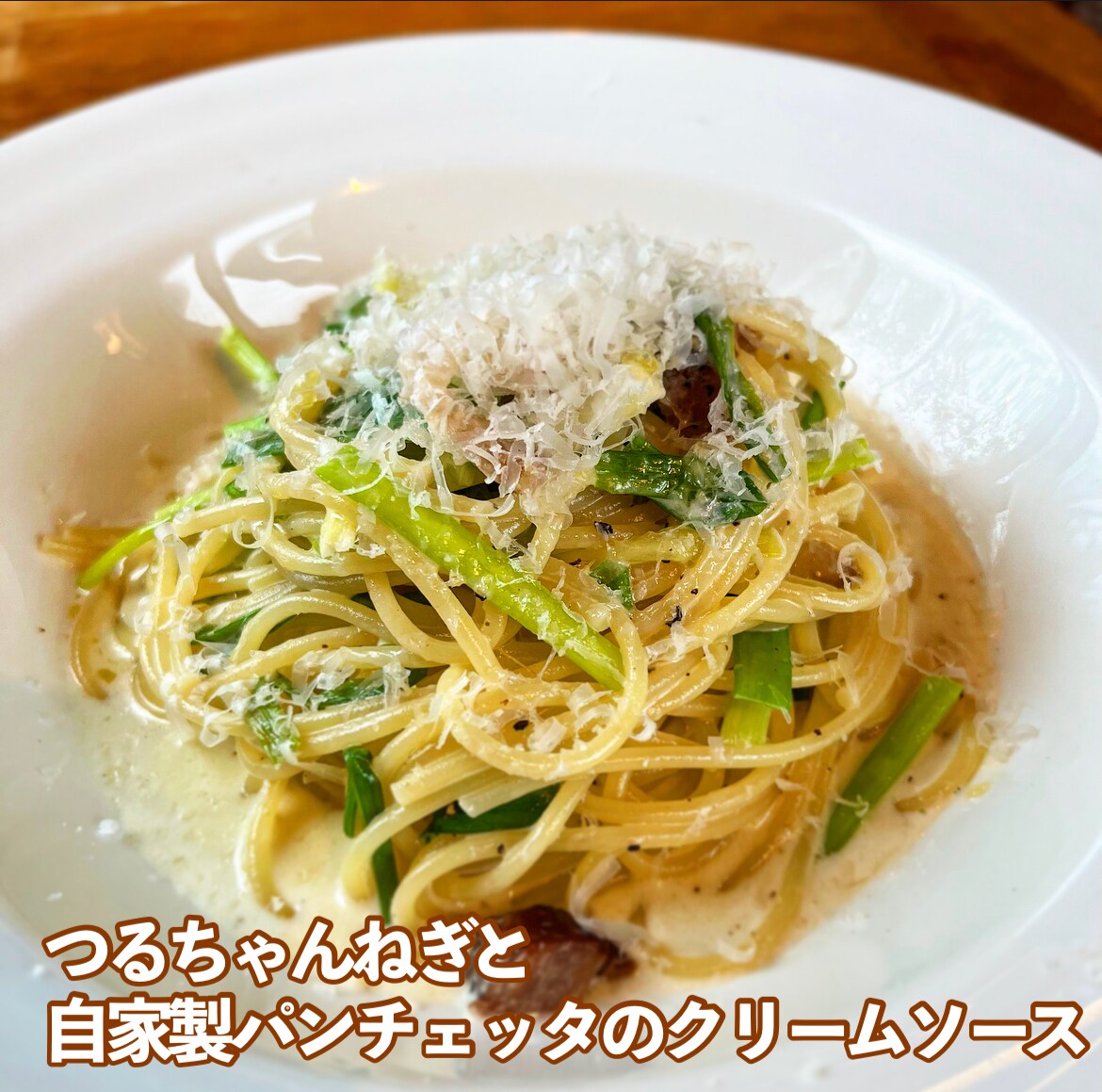 ◇つるちゃんねぎと自家製パンチェッタのクリームソース