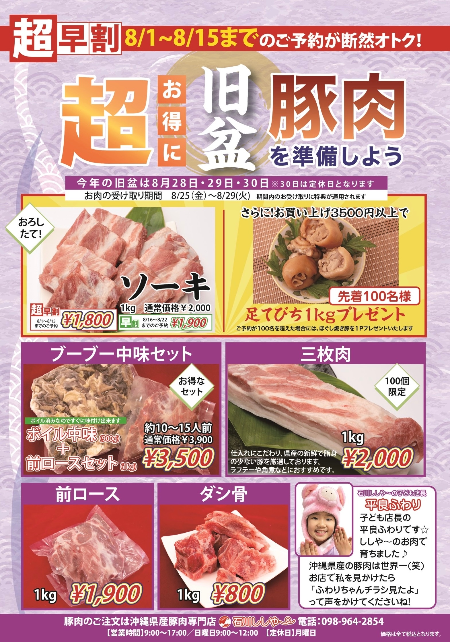 旧盆用お肉🐷超早割りは8月15日まで✨
