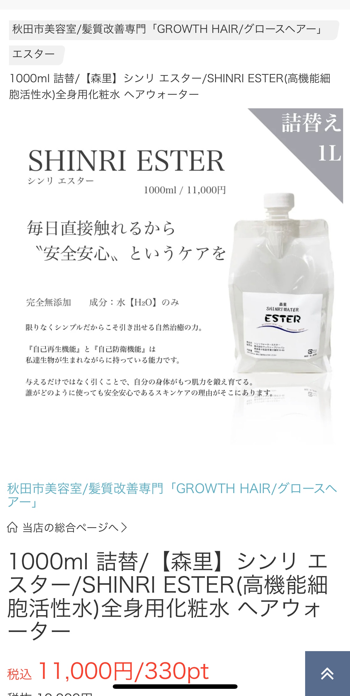エスター1リットルを購入の方に、エスター200mlをプレゼント(ボトルに詰め替えます。)