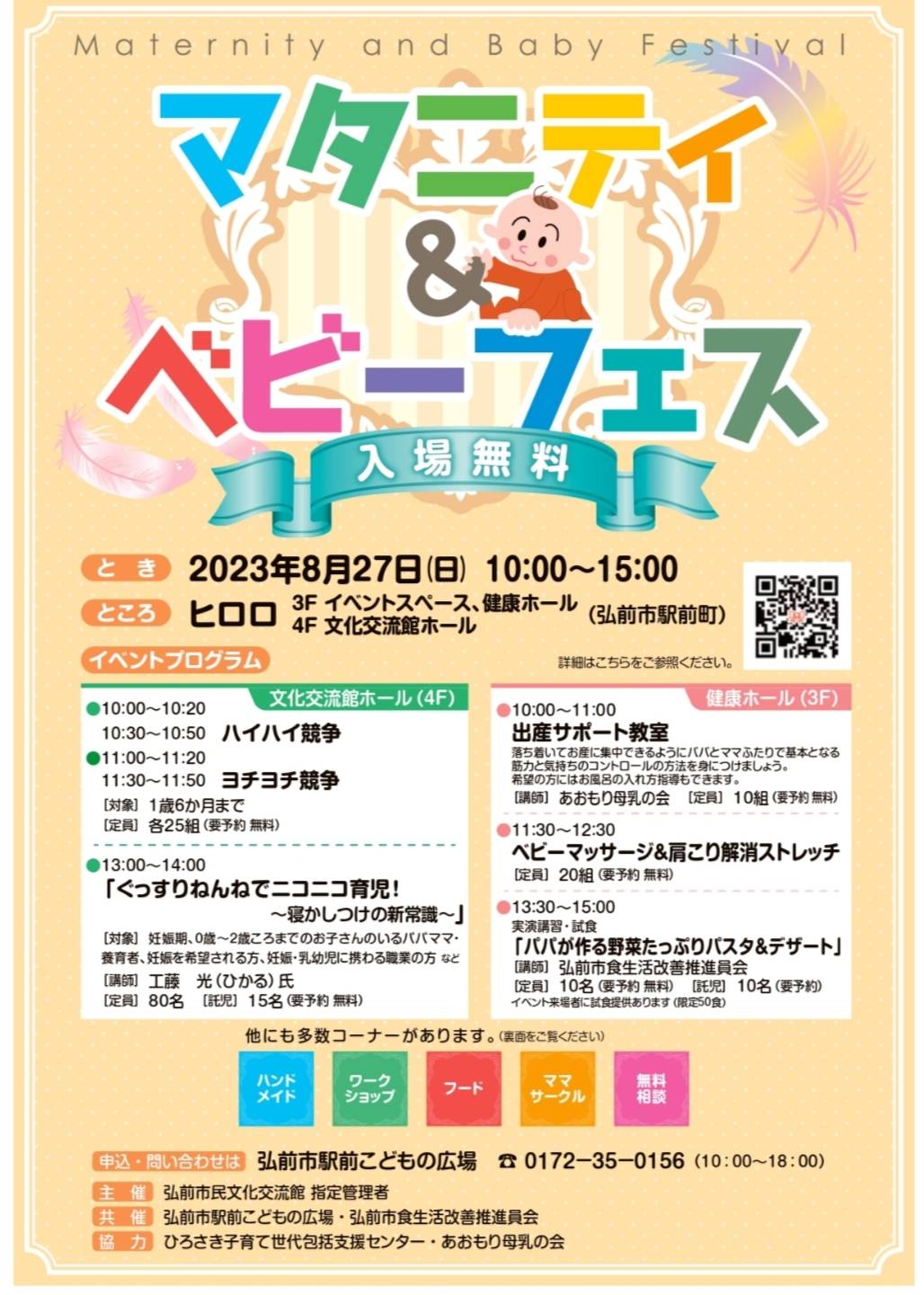 問合せ・各お申込みは弘前市駅前こどもの広場まで