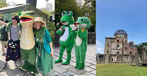 かえるの一平くんとのスリーショットをご覧ください。長年行ってみたかった、岡谷市のエルフ