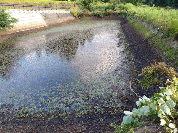 僅かばかりの溜池の水を湧水のある溜池に補水をして、
