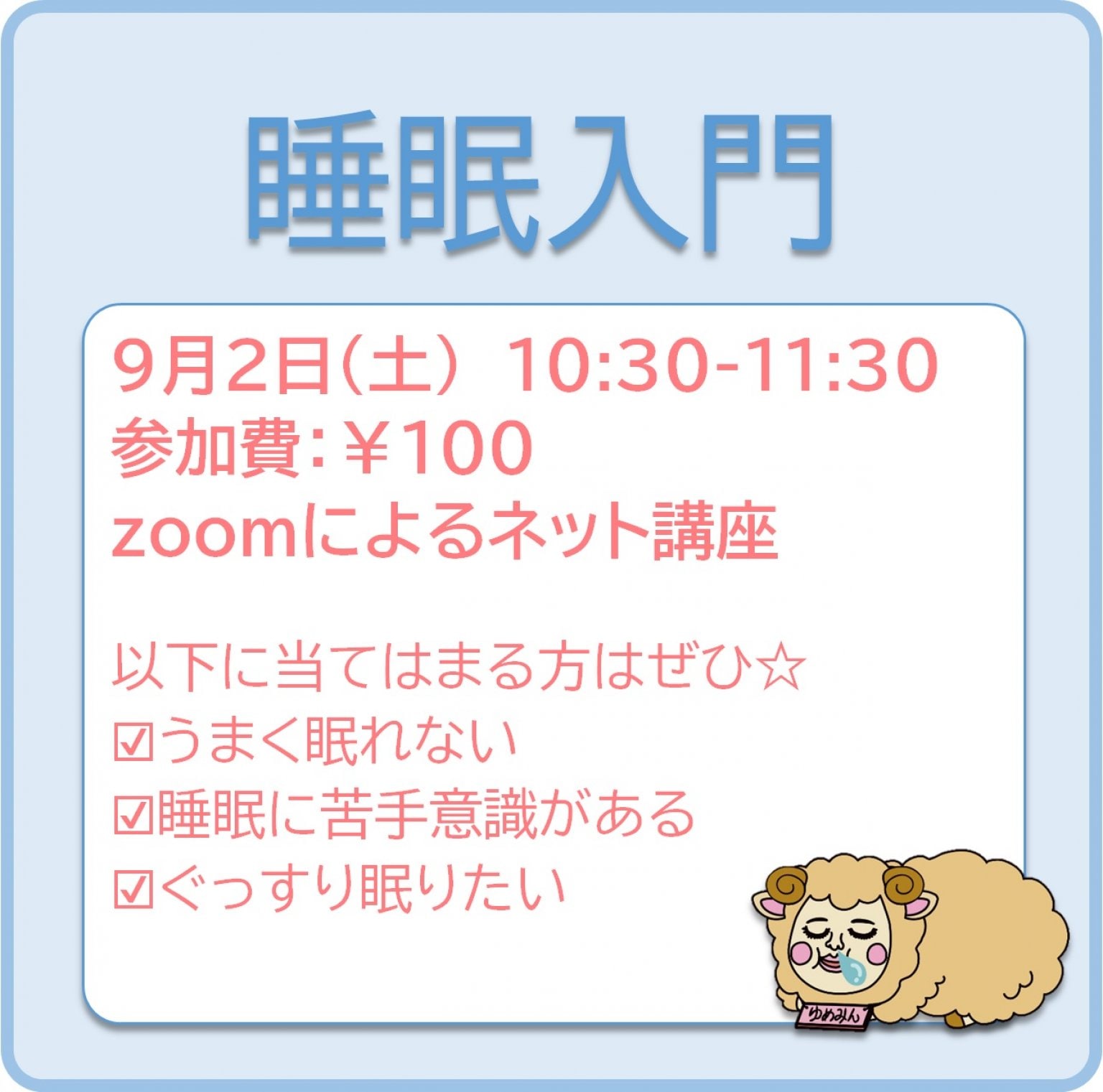 【開催】 9月2日(土)10:30-11:30