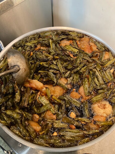 茶色くカラカラになるまで煮込むことで、油に食材の香りと旨味を移していきます😄