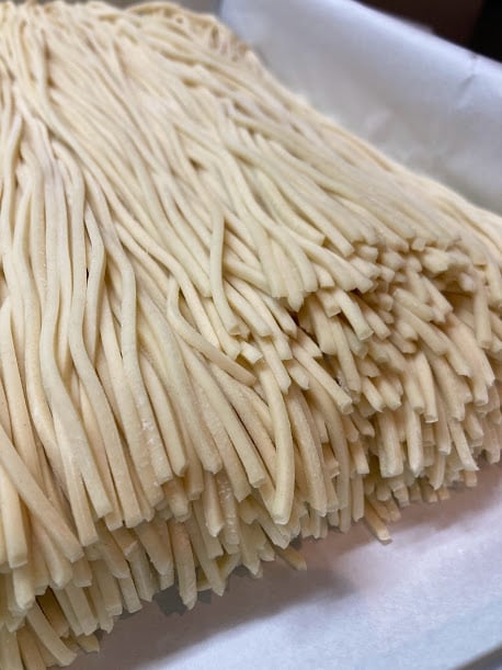 こちらの麺は製麺所のある堺東店にて毎朝粉から打っております🙌