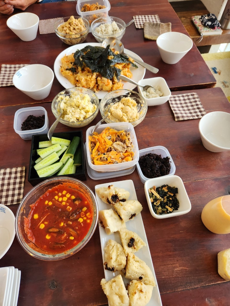 こちらに友人の備蓄食材、ビビンパの素&具材を混ぜ込み、韓国のりを仕上げにのせました。