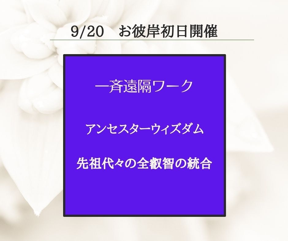 NEW【「9/20(お彼岸初日) 先祖代々の全叡智の統合~アンセスター ウィズダム」】一斉遠隔ワーク開催