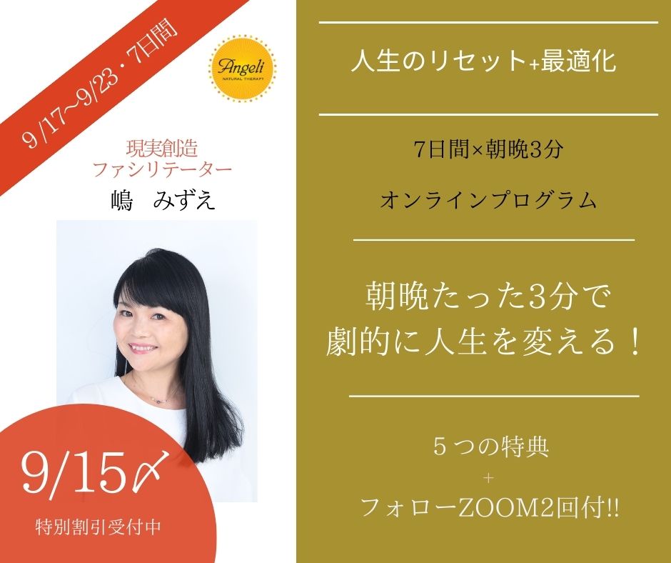 【本日受付〆】9/17~9/23 現実創造《リセット+最適化》|7日間オンラインプログラム|☆5つの特典+プレ&アフターセミナーZOOM付☆