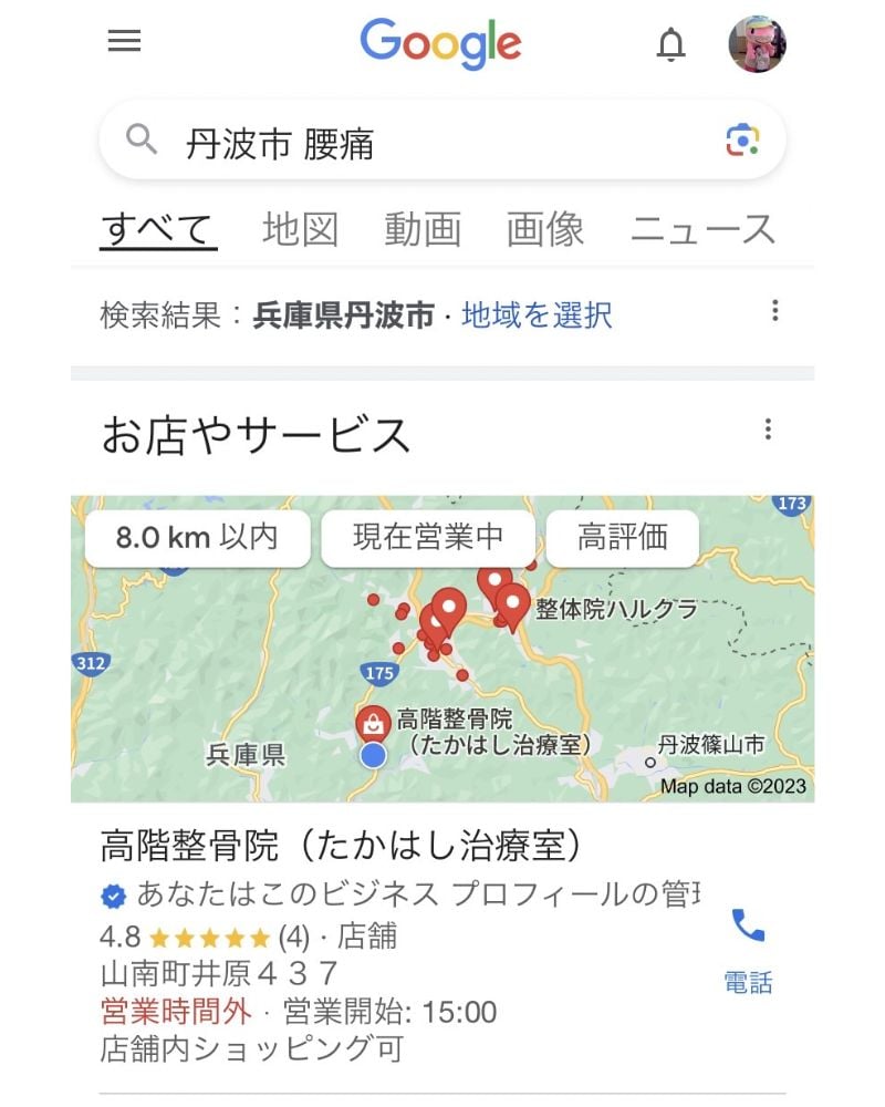 グーグル検索で「丹波市 腰痛」などのワードで当院のホームページが上位に挙がってきます。