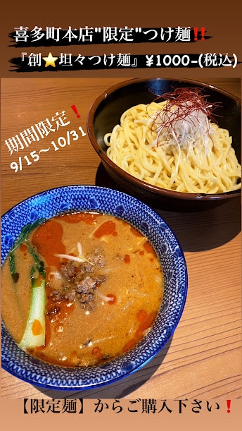 楽しみ方が色々な『創⭐️担々つけ麺』は9/15~10/31までの期間限定販売❗️