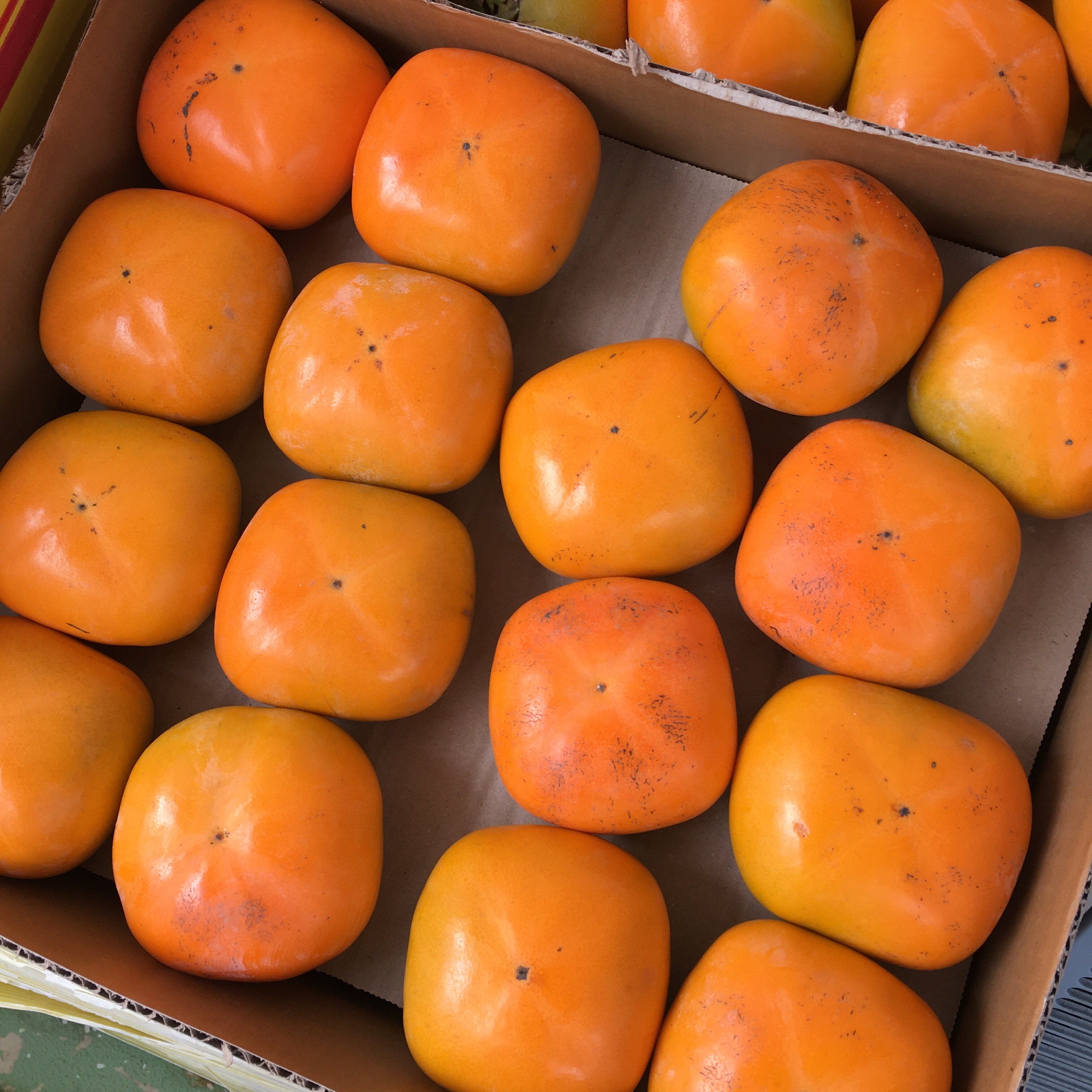 この柿は島産ではなく和歌山から来たものですが、座布団みたいな形状に少しほっこりしますね。
