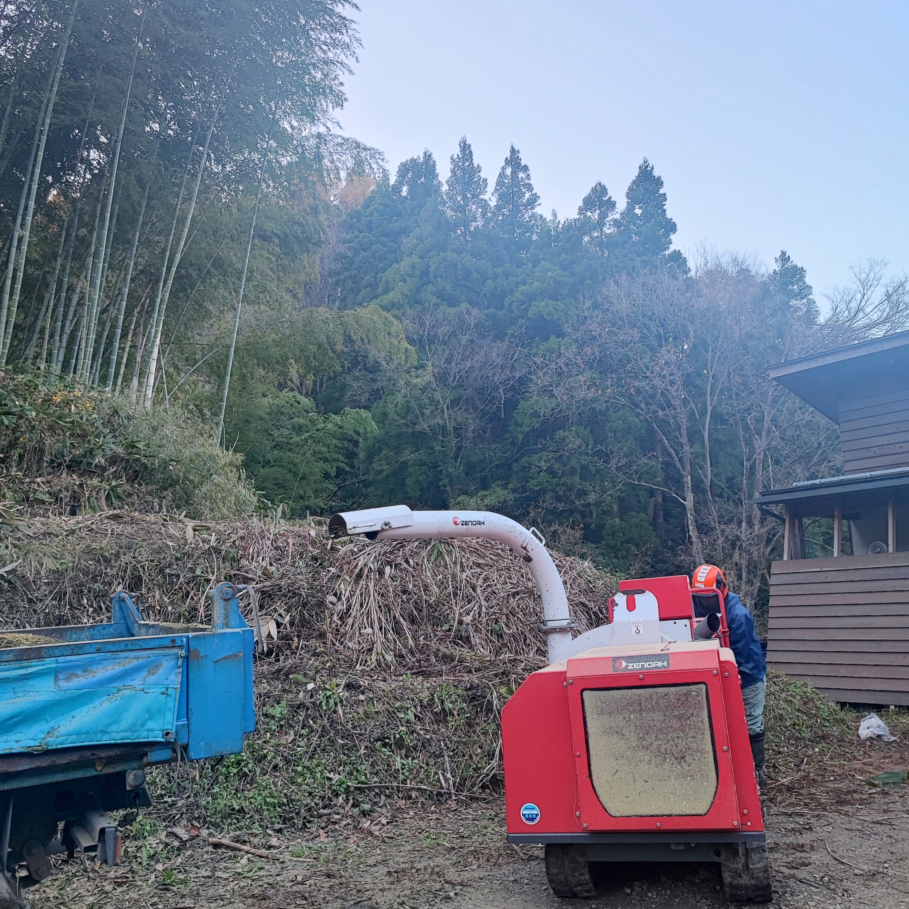 昨年11月に、農場の裏山にある竹林を整備し、間伐した竹を竹チップに細かくして、鶏のエサにも混ぜています。