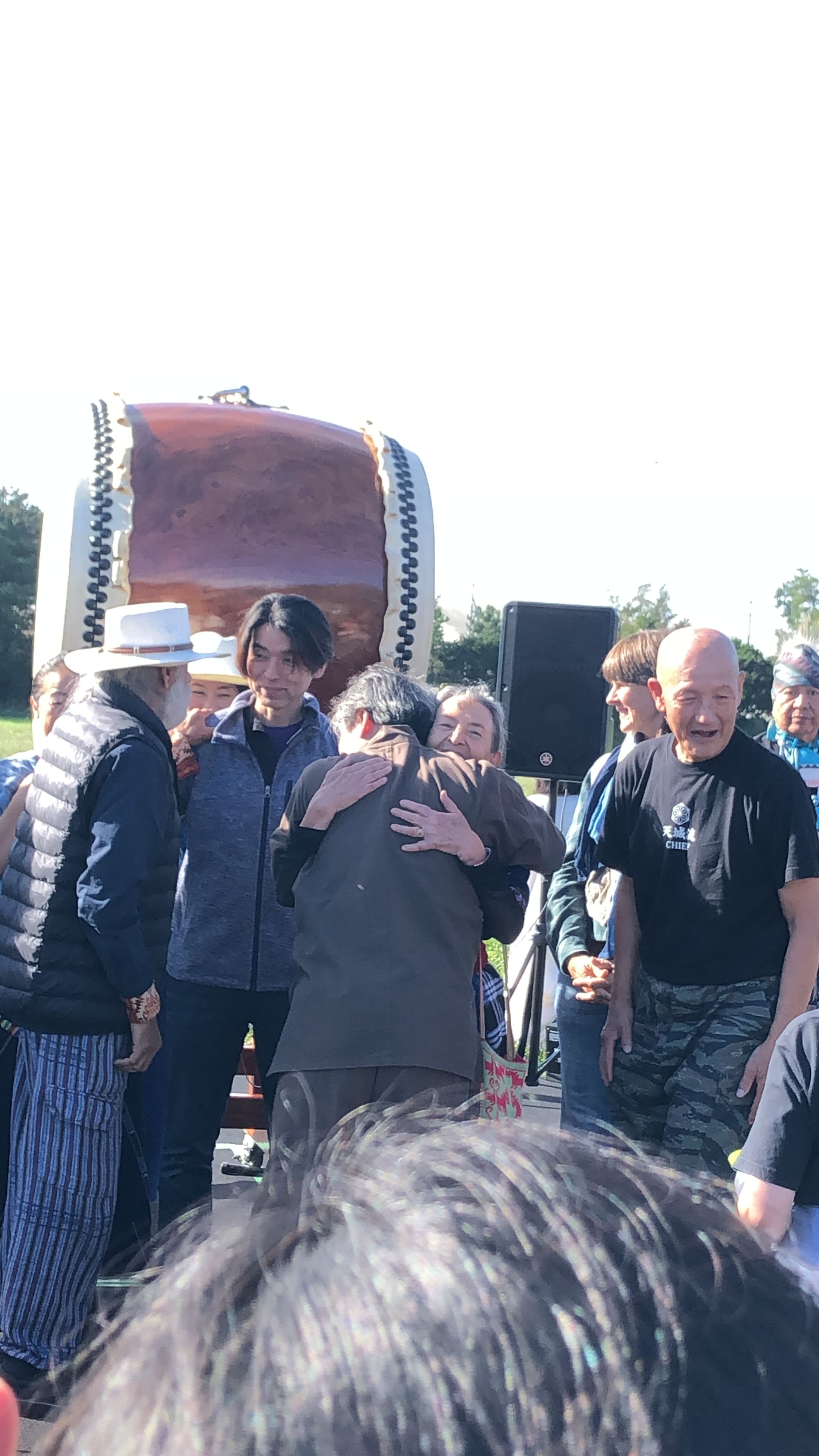 ↓長老とハグする内海先生