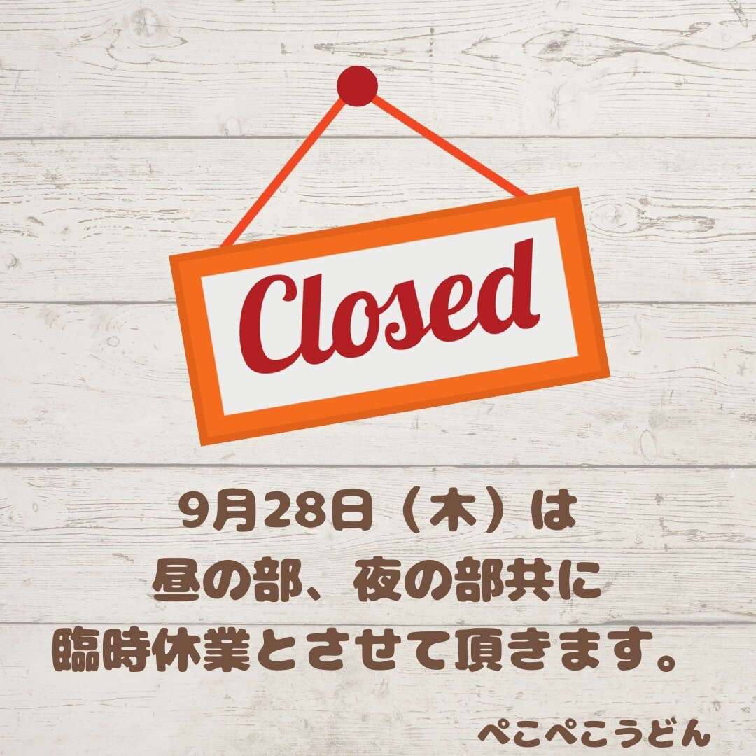 【重要】9月28日(木)の臨時休業のお知らせ