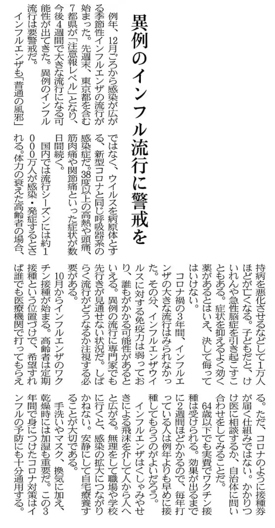 かたや、コロナの他インフルエンザも各地で流行しているようですね。これから4週間以内にインフルエンザが大流行する可能性があるそうです。