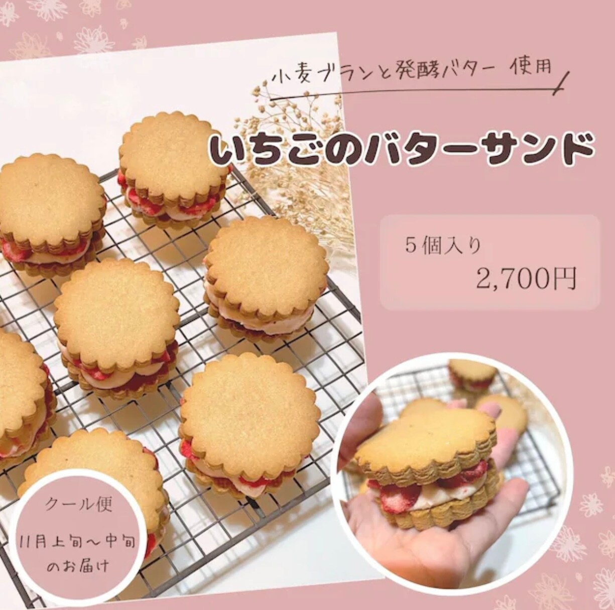 超美味しい「イチゴのバターサンド」や色々な味を楽しめる「冷やしマフィン」など、どれもからだに優しい材料で作られてるこだわりのお菓子です。
