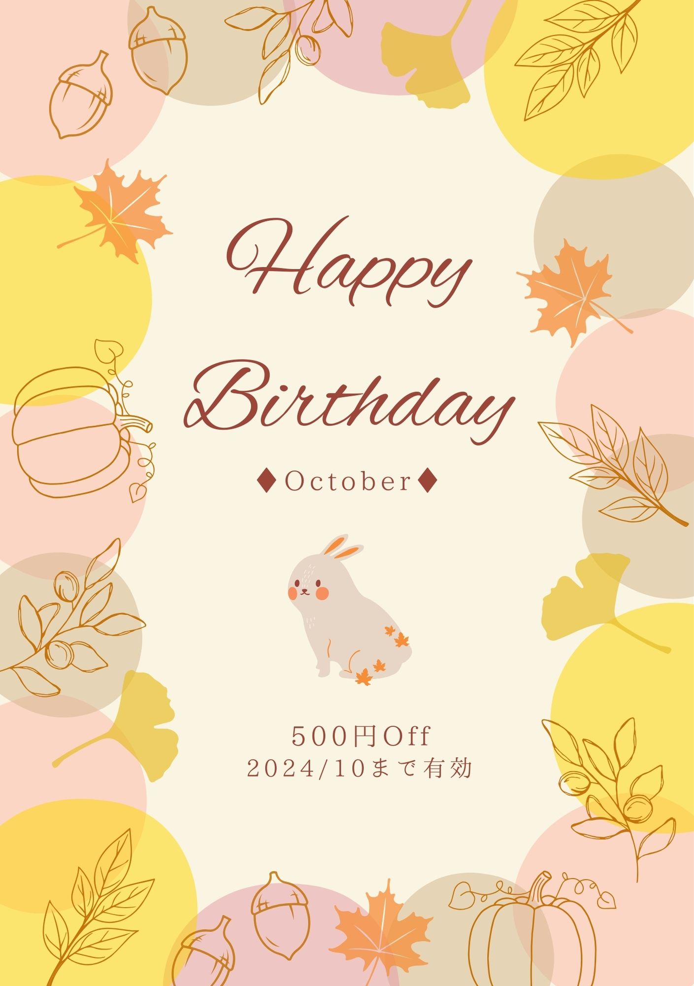 お誕生月より1年間有効です。(ツクツクとの併用はできません)