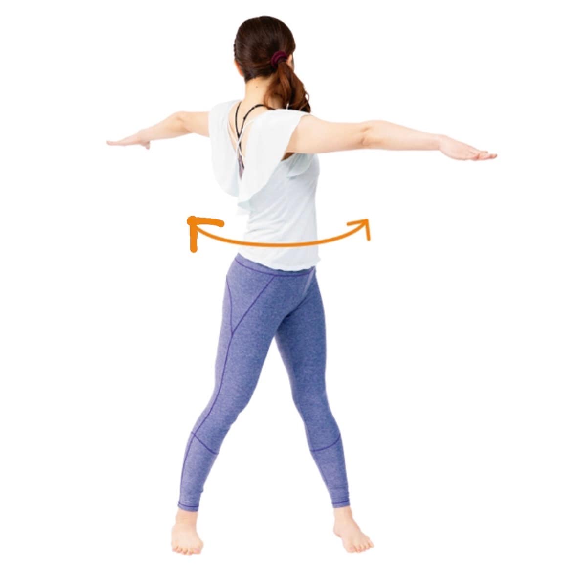 →両手を横に広げてウエストから身体をテンポ良く捻る