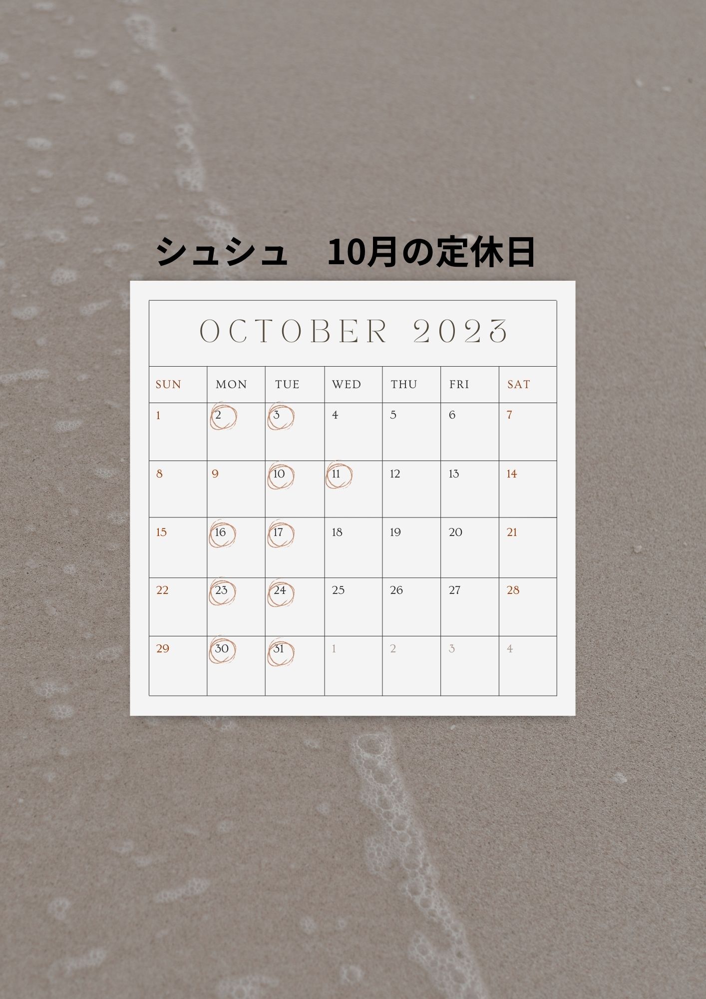 10月の定休日のお知らせ