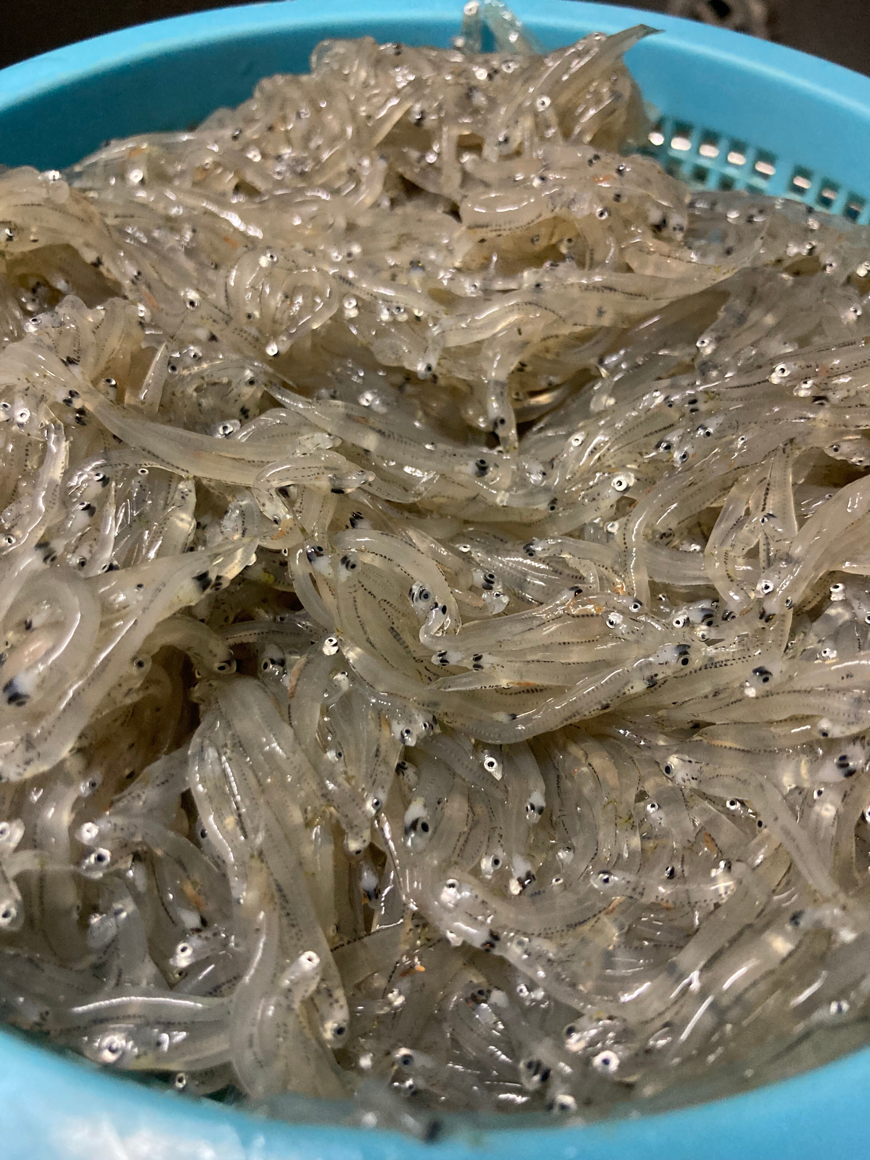 本日、大磯松道丸さんから貴重な今朝獲れ生しらす入荷致しました。