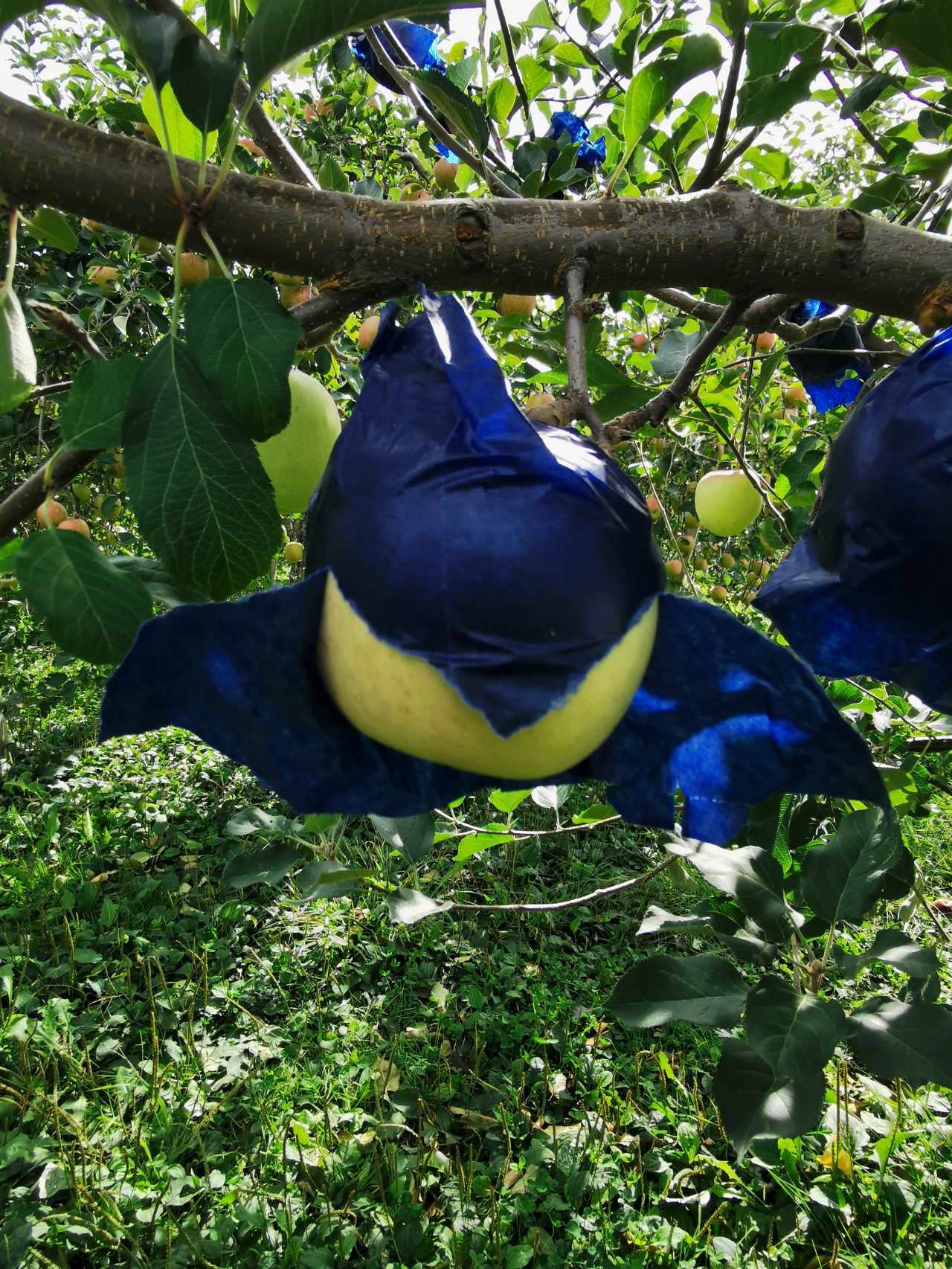 園地では袋はぎ作業、葉とりやシルバー敷きを平行して行ってます。 (詳細はまた後日) みんなで袋はぎをしていると、次男が破ったりんごがHappy Halloween apple🍏発見!